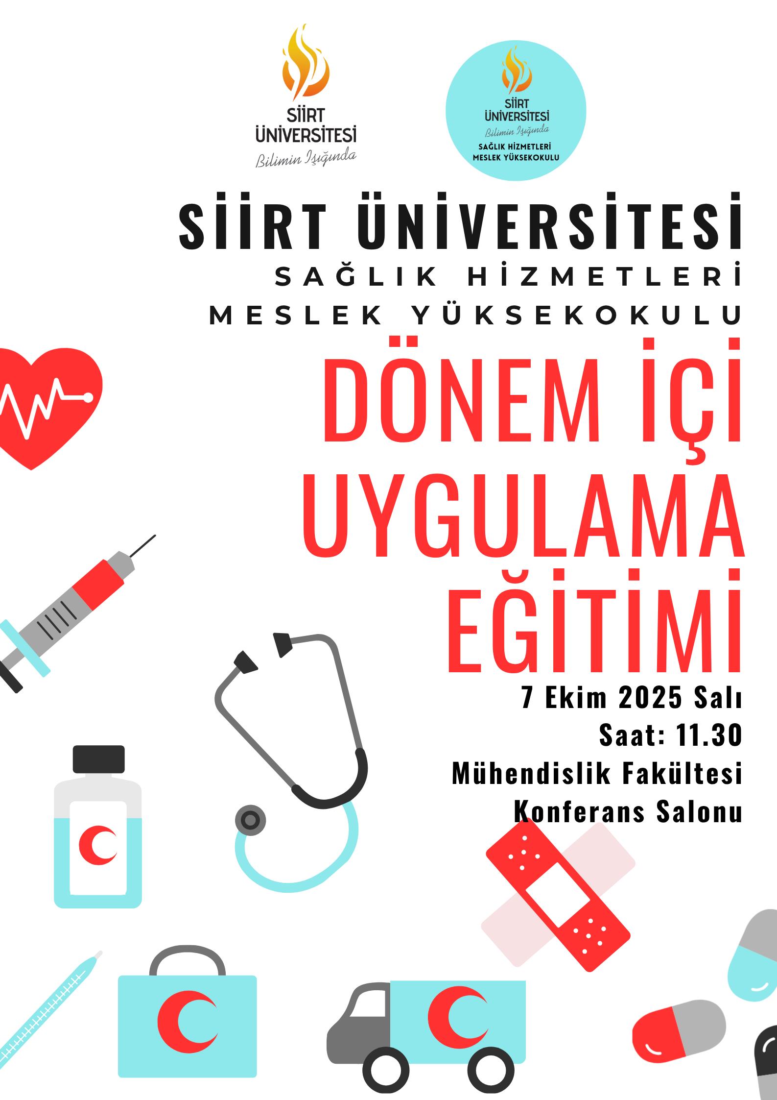 Dönem İçi Uygulama Eğitimi düzenlenecektir. İlgili öğrencilerimizin katılımını bekler, yeni eğitim-öğretim döneminde başarılar dileriz.